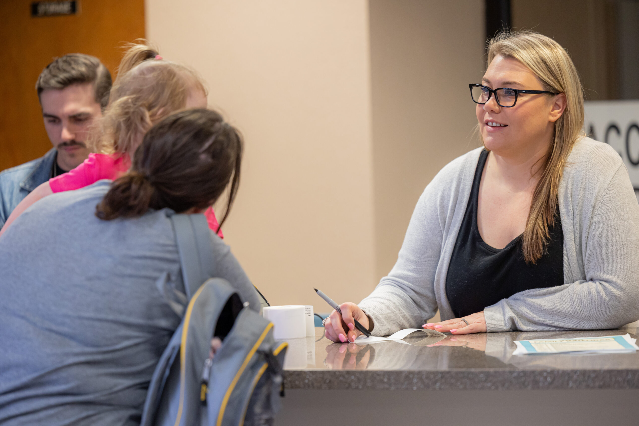 When you walk into the lobby, you will see "Kid's Check-in."