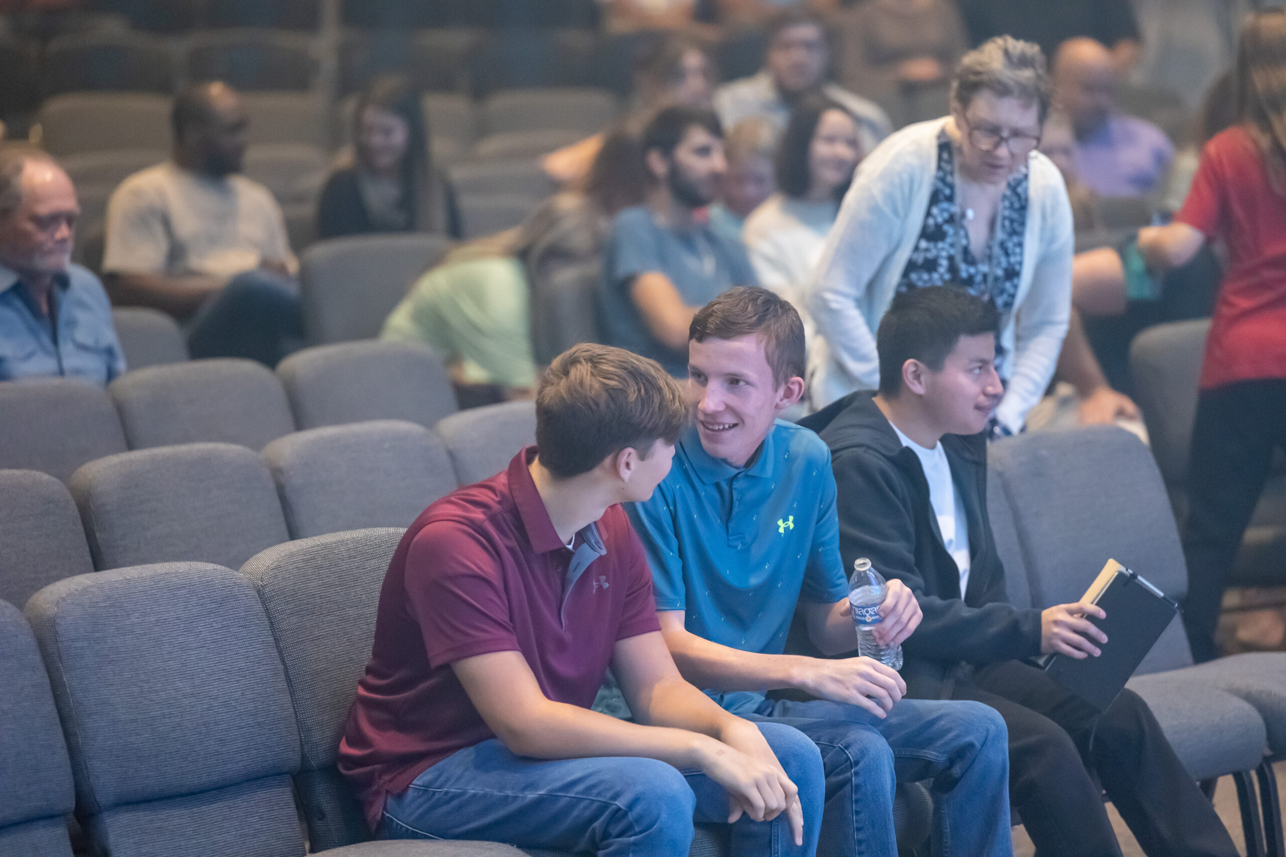 During our Sunday morning services, students and teens attend the main service in our auditorium and have a section - the very front/middle section of the auditorium - specifically for them!